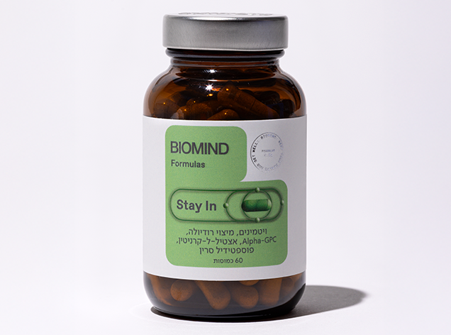 STAY IN, פורמולה חדשנית ומקיפה המכילה 7 רכיבים שנחקרו בהקשר לזיכרון ושיפור הבריאות הקוגניטיבית.